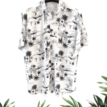 پیراهن مردانه لینن سرمه ای گل سفید