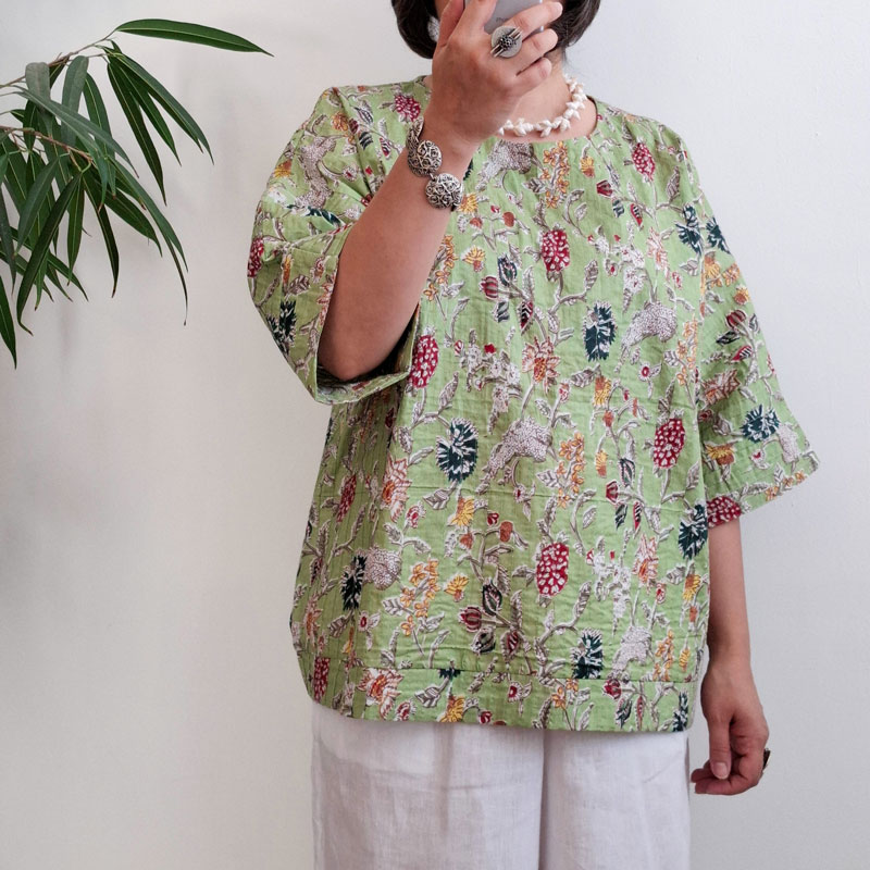 شومیز باتیک هندی کایلین| طرح اصیل و رنگ سبز چشمگیر